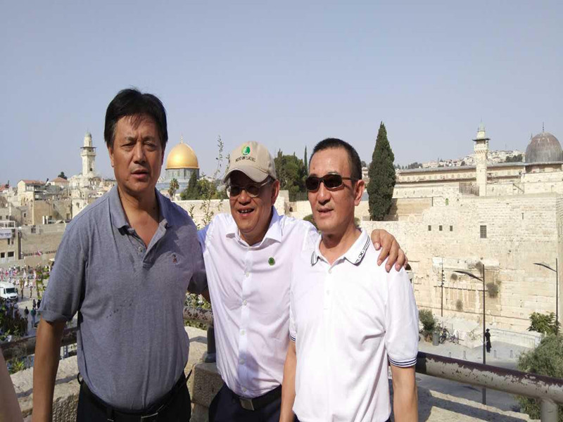董事長高作平(左)在耶路撒冷與武大校董、校友企業(yè)家理事會副理事長艾路明(中),武大校董、校友企業(yè)家理事楚天舒合影(右)