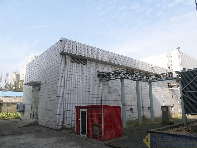 主控樓建筑平面呈菜刀形布置,建筑總長約37.3m,總寬約12.2m,主體結(jié)構(gòu)為兩層(南側(cè)配電室為一層)框架結(jié)構(gòu),建筑總高約為11.1m,總建筑面積約594.1m2。主控樓一樓南側(cè)為配電室,北側(cè)為電容器室、雜物間及廚房,二樓為控制室及資料室。