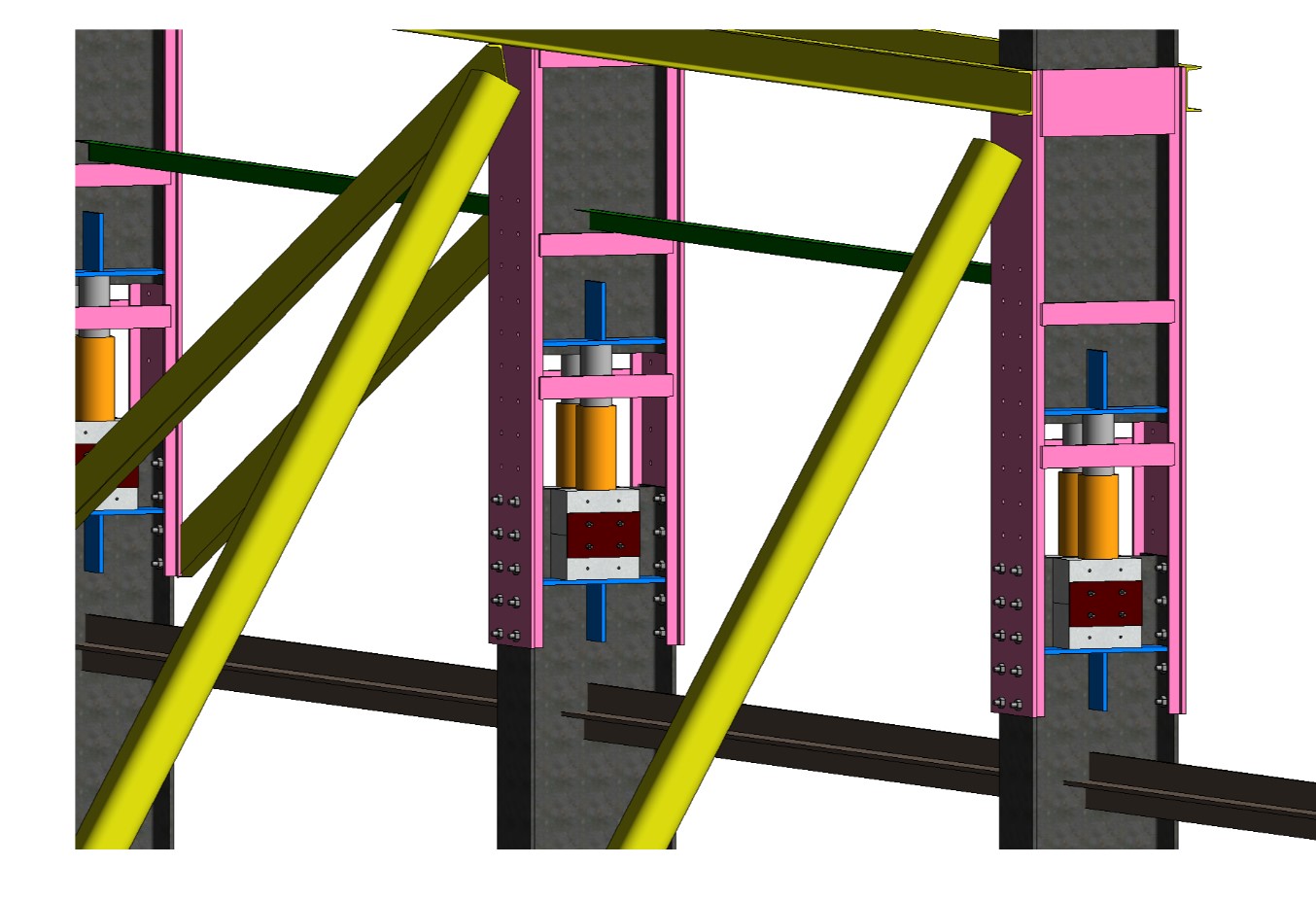 隨著頂升高度的增加,下部牛腿可快速向上滑動,鋼滑道與柱芯墊塊之間灌注的材料具有超早強的特點,可以快速形成鋼管混凝土柱,從而大幅度縮短工期。