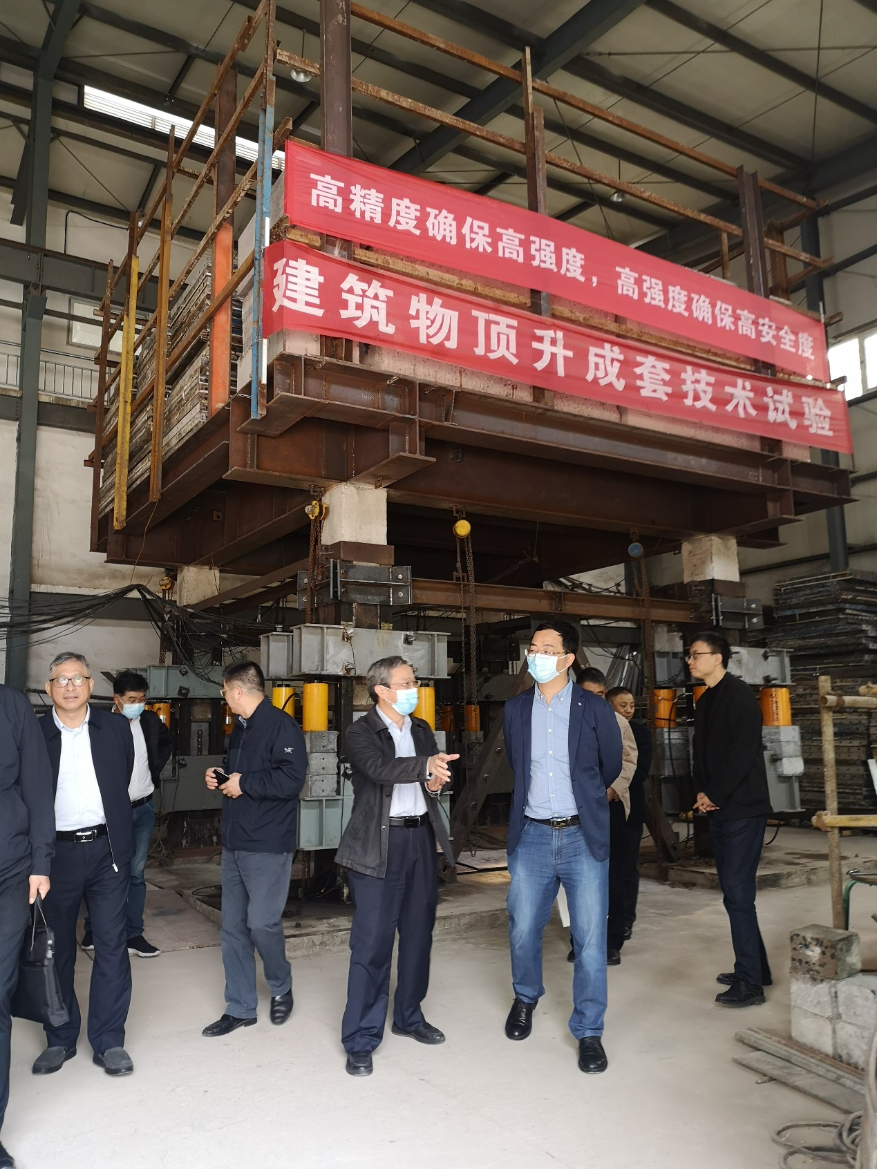 陳萬波董事長一行在公司總經(jīng)理萬雄衛(wèi)、設(shè)計公司總工程師吳博的陪同下參觀了巨成頂升試驗項目、自鎖試驗項目,以及公司專為豐電三期擴建項目開展的鋼平臺試驗和面層混凝土試驗現(xiàn)場。陳萬波董事長一行認真聽取了公司核心技術(shù)——頂升、自鎖試驗項目的情況,充分肯定了該兩項核心技術(shù)在建筑技術(shù)改革、造福人類方面的重大意義。